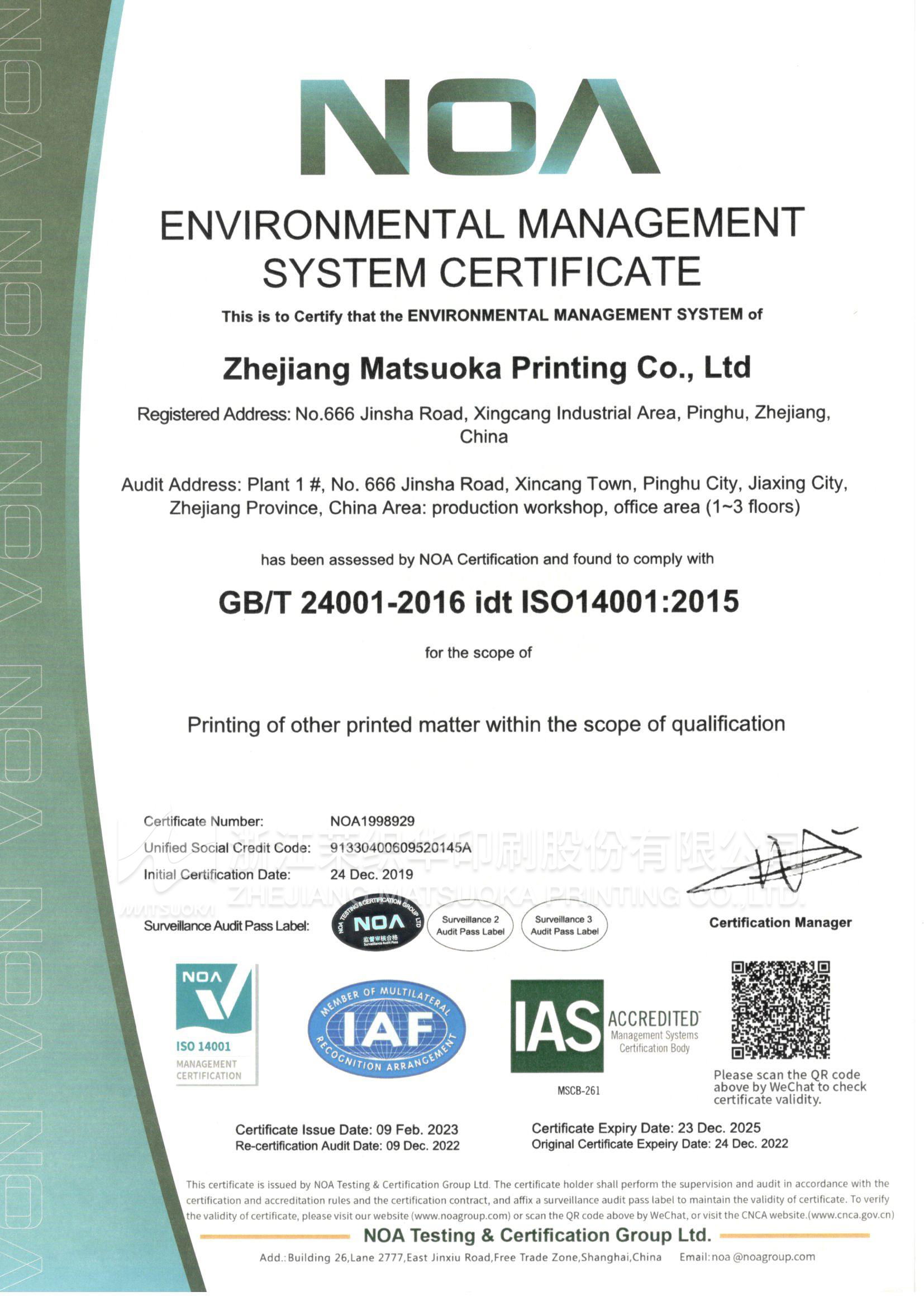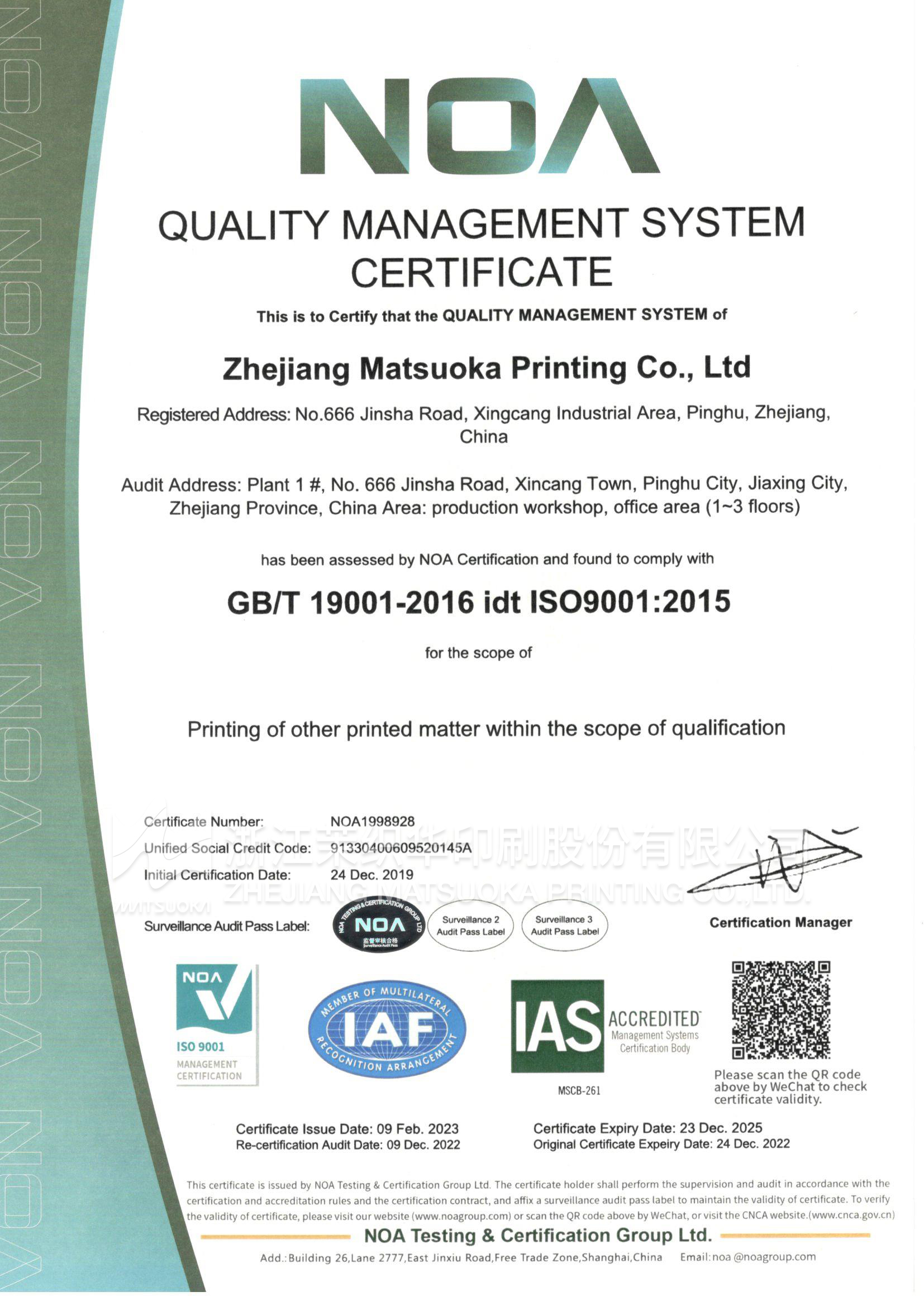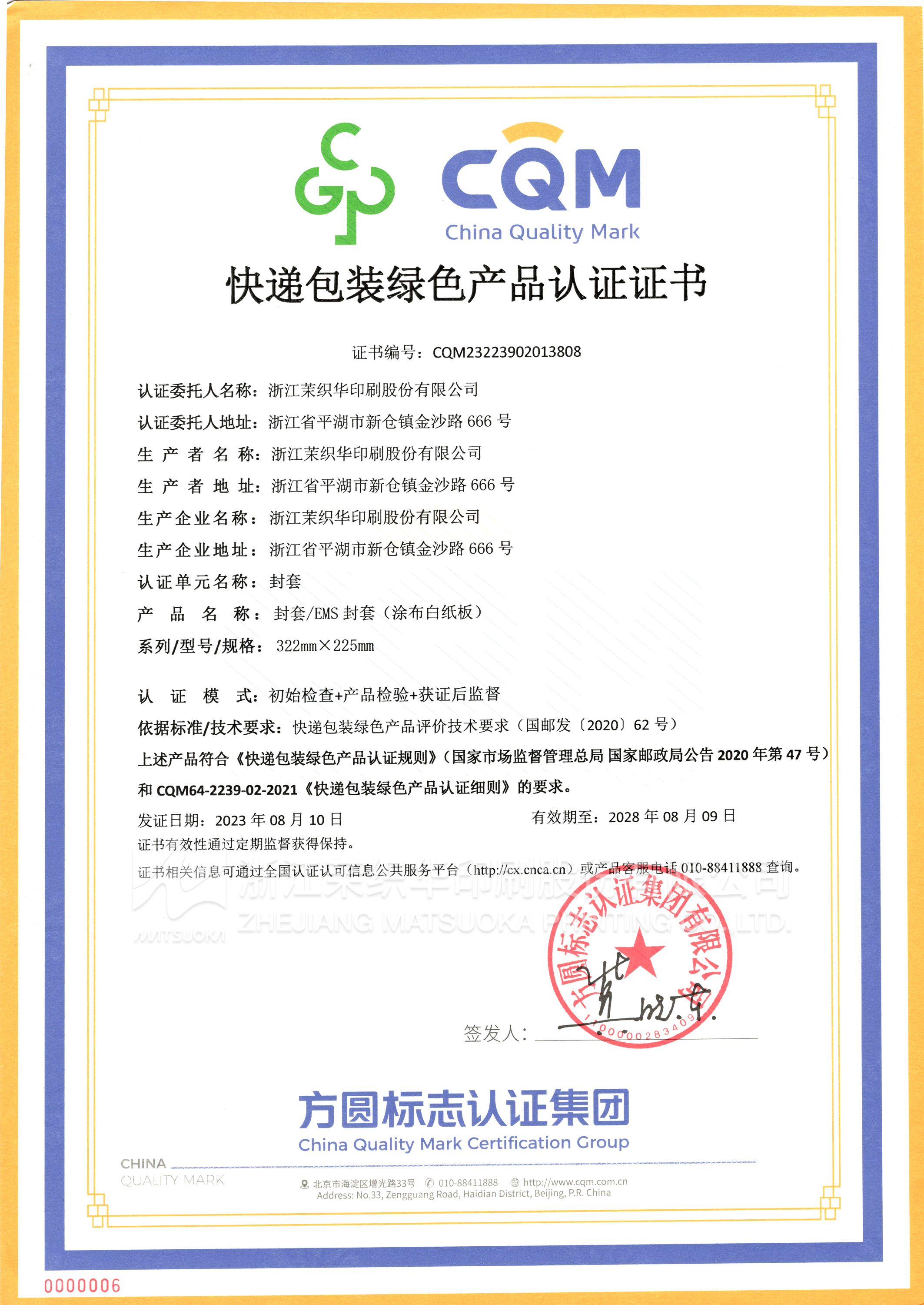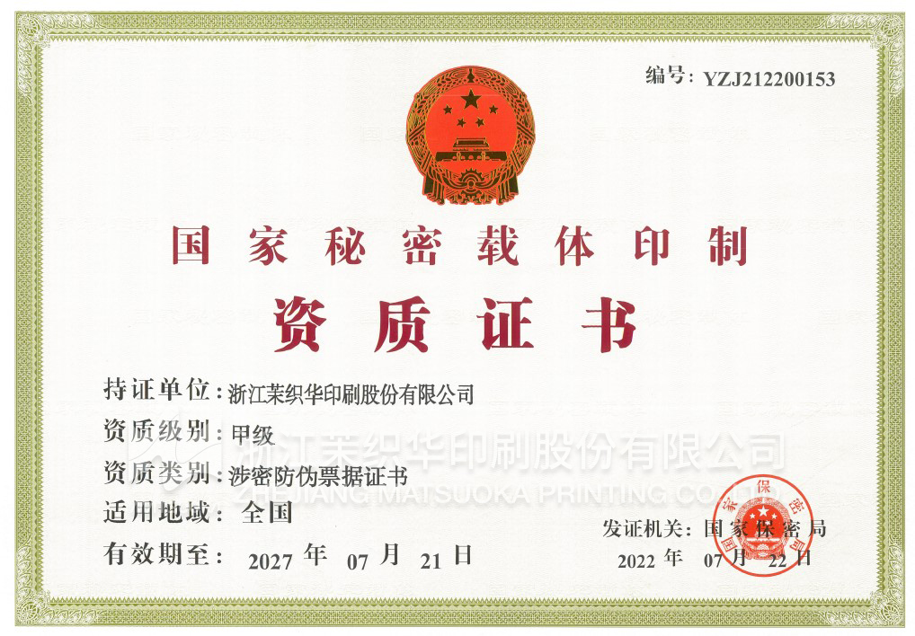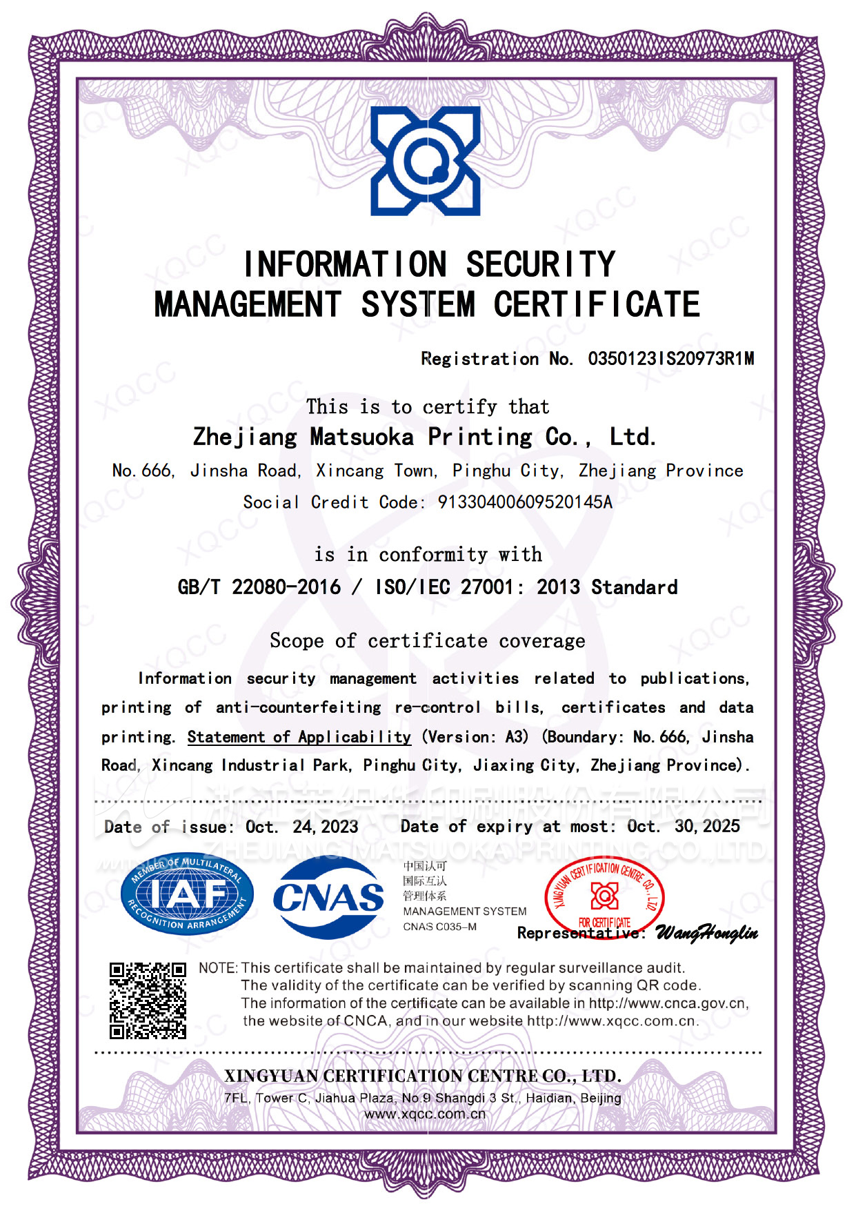 ZHEJIANG MATSUOKA PRINTING CO., LTD, founded in September 1992, is located in Xincang Town, Pinghu City, Jiaxing, Zhejiang Province, with a modern facility spanning 57,000 square meters and equipment assets valued over 300 million RMB. The company's main business includes cultural paper product printing, commercial invoice printing, packaging and decorative printing, and children's toy manufacturing. It is recognized as a national high-tech enterprise, an enterprise with China Environmental Labeling certification, and an authorized printing company for bank documents. The company has received numerous honors, including National Printing Model Enterprise, Zhejiang Specialized and New Small and Medium Enterprise, Famous Trademark of Zhejiang Province, and a AAA-rated “Contract-honoring and Credit-keeping ” unit in Zhejiang. Its R&D center has been designated as a provincial-level enterprise research institute.
